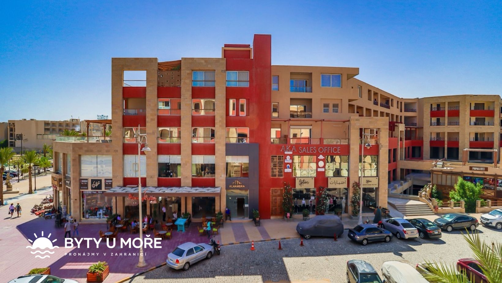 Rezidenční projekt Al Hambra 1st Avenue je situován v těsné blízkosti centra Hurgády, na ulici El Mamsha, která jednou z nejznámějších turistických oblastí v Hurgádě. Cesta z mezinárodního letiště trvá jen 5 minut. Lokalita je klidná, čistá a převážně s evropskou komunitou a bohatým zastoupením české komunity přímo v rezidenci Al Hambra a ve vedlejším projektu Princess. Rezort zahrnuje rezidenční budovy, velký bazén, zahradu, restaurace, fitness, obchody, butiky, služby, wellness, hypermarket, lékařskou kliniku a parkoviště. V budově je k dispozici ostraha, recepce, hotelové služby a správa nemovitosti. Samozřejmostí jsou výtahy ve všech budovách. Stravování je v současné době možné ve 2 restauracích přímo v objektu resortu, v jedné z nich jsou k dispozici snídaně od 8 hodin ráno. Dále je v objektu bistro a velký hypermarket, kde lze nakoupit potraviny, pokud si chcete sami uvařit v bytě vybaveném kuchyňkou linkou. V Hurgádě výborně funguje i dovážková služba s aplikací Talabat.